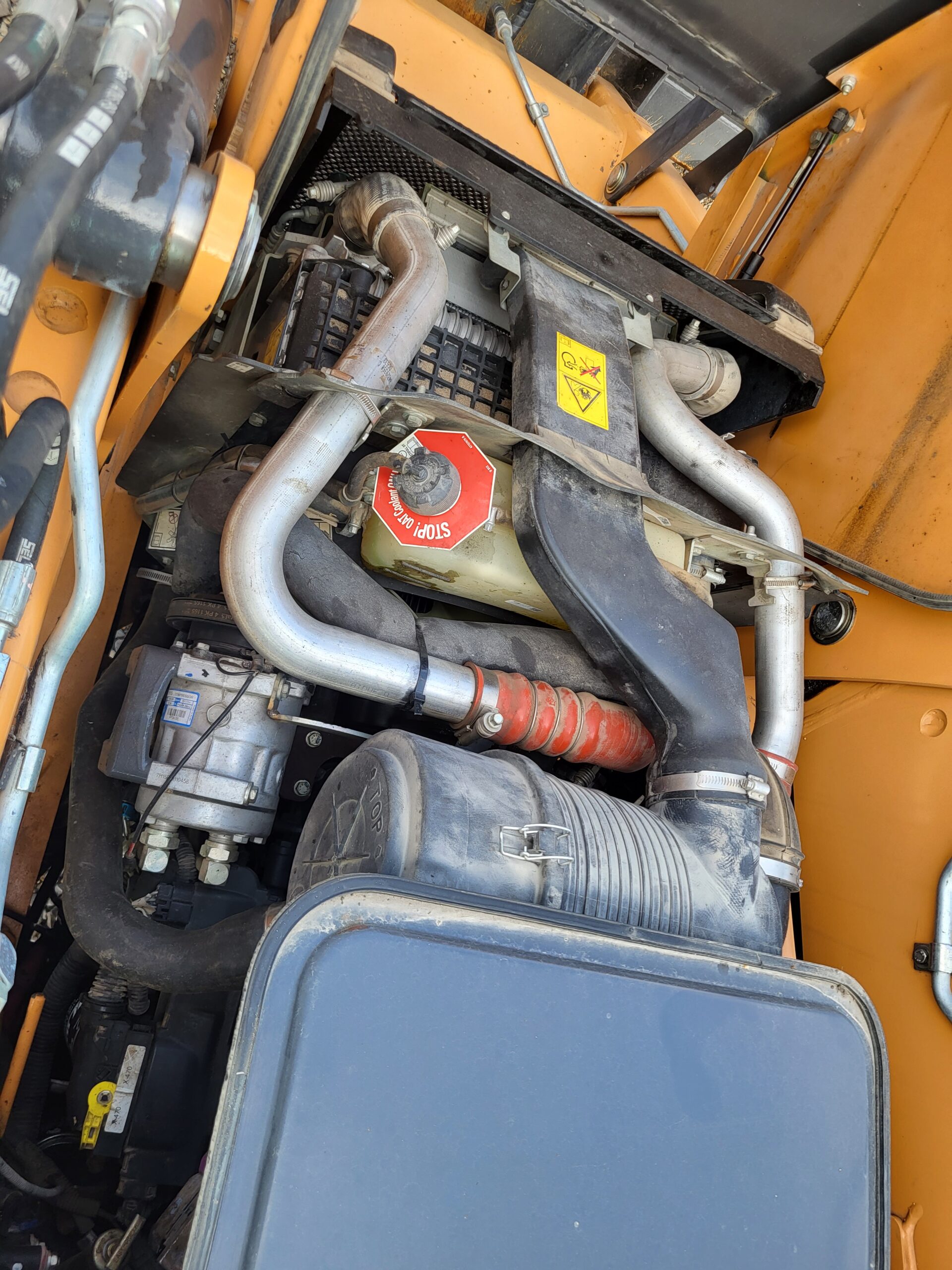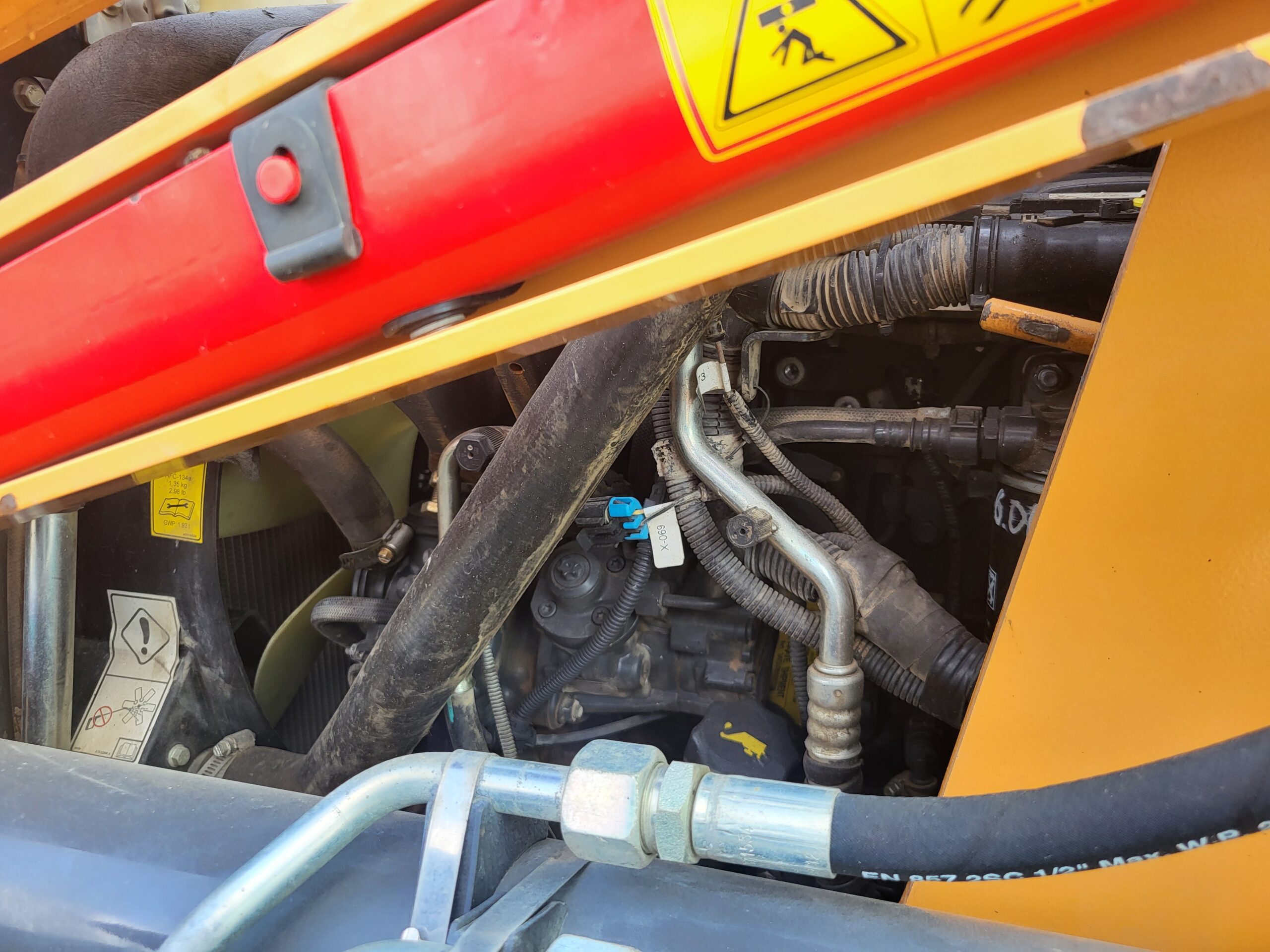 Hydraulic installation to the hammer on the backhoe.